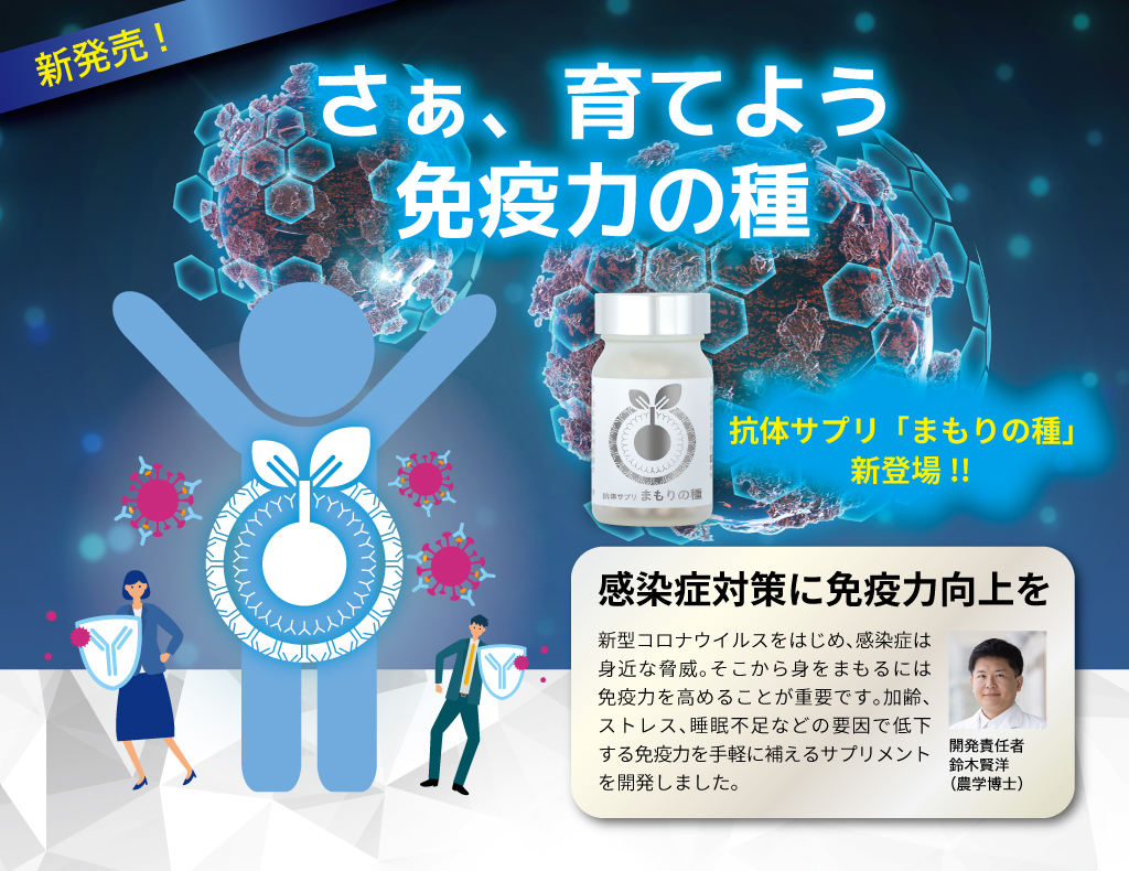 『萬寿のしずく』は身体を整え、自身のまもる力を高めます。『抗体サプリ まもりの種』はウイルスなど外敵を排除する抗体を増やします。
