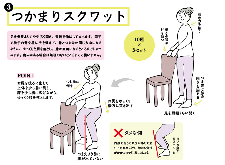 歳をとるとこの逆の順序で衰えが進み、寝たきりになることも。まずは足腰の筋肉から毎日少しずつ鍛えていきましょう。